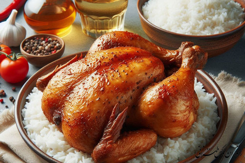 - جوجهکباب زعفرانی همراه با برنج ایرانی